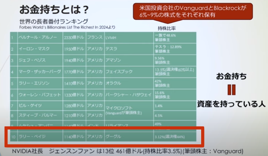 例えばGoogleのラリー・ペイジさんは3.12%しか株を持っていません。