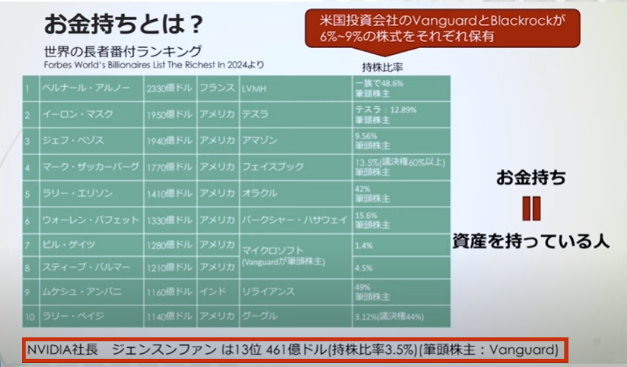 この表を見ていただきたいんですけど、「世界の長者番付けランキング」です。