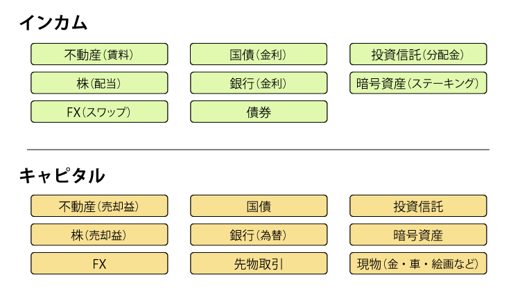 以下、インカムがあるもの、キャピタルがあるもので整理しました。