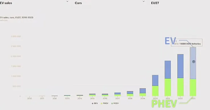ヨーロッパにおいてハイブリッドは環境に配慮した車ではないとされ、PHEVとEVのみがカウントされている。