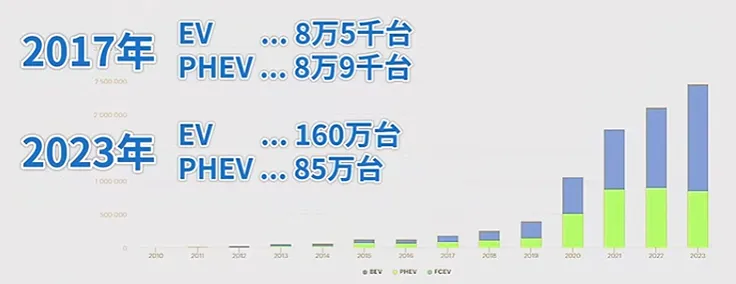 2017年はEVが8万5000台、PHEVが8万9000台。