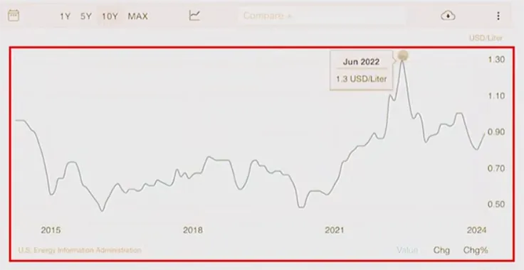 特にコロナ後に一気に価格が上がって、今のアメリカは石油が取れますけど、そういう国でさえ今の日本と同じ、140円~150円/L