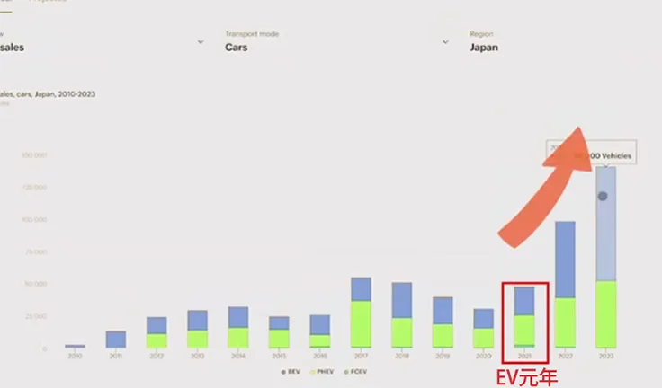 EV元年の年からの伸びを見ると、売れてるのが見て取れるのではないでしょうか?